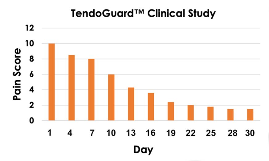 TendoGuard เป็นสูตรผสมจากกระดูกอกไก่และเปลือกไข่ โดยสูตรนี้ผ่านการทดสอบทางคลินิกมาแล้ว ซึ่งสูตรนี้ให้คอลลาเจนชนิด (I, II, V และ X) ที่จำเป็นสำหรับการซ่อมแซมกระดูก กระดูกอ่อน และเนื้อเยื่ออย่างมีประสิทธิภาพ โดยคอลลาเจนนี้จะถูกย่อยอย่างระมัดระวัง (hydrolysed collagen) เพื่อให้ร่างกายดูดซึมได้ดี พร้อมทั้ยังงรักษาสารอาหารและมิวโคโพลีแซคคาไรด์ตามธรรมชาติ ซึ่งได้แก่ กรดไฮยาลูโรนิก (hyaluronic acid) คอนดรอยติน (chondroitin) และกลูโคซามีน (glucosamine) ที่ช่วยส่งเสริมความแข็งแรงและความยืดหยุ่นของข้อต่อ